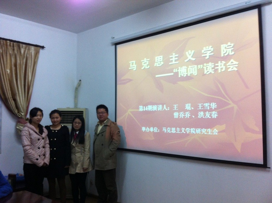 2013年04月24日晚 ,腾博tengbo9885官网“博闻”念书会第14期在流芳校区院聚会室顺遂举行。本期念书会由院研究生会主席李嘉仪、学术部部长孙梓毓主持 ,并组织学院研究生起劲加入。此次念书会的主讲人划分是来自我院的曾乔乔、洪友春以及管理学院的王雪华、王琨四位同砚。四位同砚以“学习雷锋精神——友好”为主题举行了精彩生动的报告 ,赢得了在座同砚的赞许和掌声。