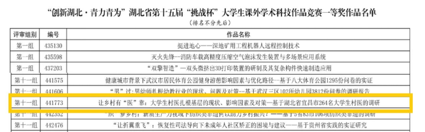 喜报!我院团队项目荣获湖北省第十五届“挑战杯”大学生课外学术科技作品竞赛 一等奖!