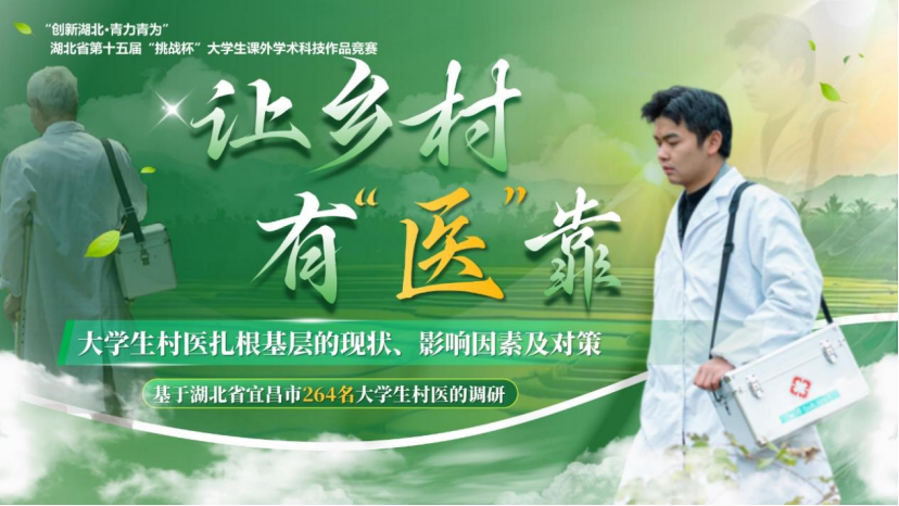 我院获奖项目聚焦“大学生村医扎基本层”这一要害议题,通过对湖北省宜昌市264名大学生村医的深度调研,系统剖析了下层医疗人才留存的现状、影响因素,并提出针对性对策。项目从选题到落地,凝聚了团队成员的心血与智慧——徐嘉婧、张思雨、赵超亚、邓佳琪、汪艺佳、戴立、李晓宇、柯宁八位同砚历时数月,深入一线走访、网络数据、撰写报告,在余伟斌、王威、汪喆伦三位先生的悉心指导下,最终形成了兼具实践价值与学术深度的研究效果。