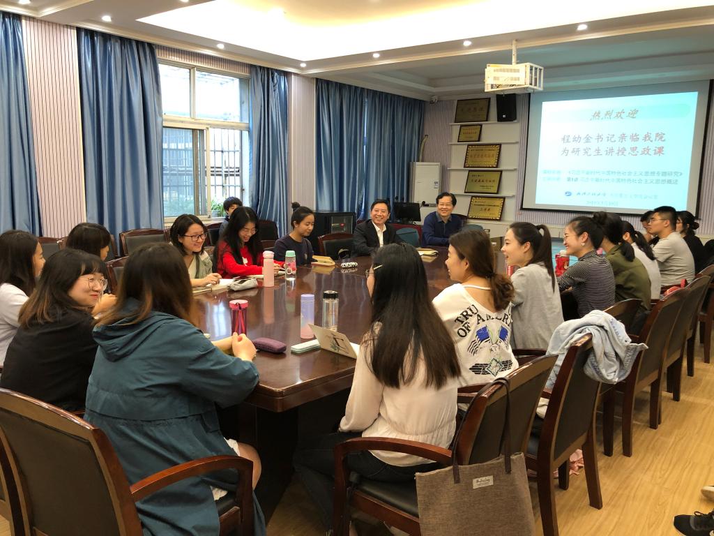 ÔÚÊÚ¿ÎÖУ¬³ÌÓ×½ðÊé¼ÇÎ§ÈÆÏ°½üƽÐÂʱ´úÖйúÌØÉ«Éç»áÖ÷ÒåÍ·ÄÔµÄÐγÉÌõ¼þ¡¢Ö÷ÒªÄÚÈÝ¡¢ÀíÂÛÆ·ÖÊ¡¢ÊмÛǮֵ¡¢ÖØ´óÒâÒåÕö¿ª½Ìѧ£¬¼ÈÉîÈëdz³öÓÖÒý¾¾Ýµä£¬ÏµÍ³ÐðÊöÁËϰ½üƽÐÂʱ´úÖйúÌØÉ«Éç»áÖ÷ÒåÍ·ÄÔÖеÄÔªÎÊÌâ¡¢Ö÷¿ò¼Ü£¬Ìá³öÁËÐí¶à·¢ÈËÉîÊ¡µÄ¿ÎÌÃÌÖÂÛ»°Ì⣬¼ÈÔ̺¬ÁËÒ»¸öר¼ÒѧÕß¾«Õ¿µÄѧÊõËØÑøºÍ¹¦µ×£¬ÓÖÌåÏÖÁËУµ³Î¯Êé¼Ç¸ß¶ÈµÄÕþÖÎËØÑøºÍÓýÈËÇ黳¡£ÌýÍê³ÌÊé¼ÇµÄÊڿΣ¬Í¬ÑâÃÇ·×·×ÌåÏÖ£¬½ñÌìÏÈÉúµÄÊÚ¿ÎÐÅÏ¢Á¿´ó¡¢ÕþÖÎվλ¸ß¡¢Ñ§Êõ¿´·¨¾«×¼¡¢ÄÚÈÝͨ͸µ½Î»£¬ÕæÕæÇÐÇиÐÊܵ½ÁËר¼ÒѧÕß¡°½ð¿Î¡±µÄ±ê×¼¡¢ÀíÂÛѧϰºÍÑо¿ÎÞÏÞµÄ÷ÈÁ¦¡£³ÌÊé¼ÇÖ¸³ö£¬ÔöÇ¿Âí¿Ë˼Ö÷ÒåÀíÂÛÎä×°ÊÇÎÒÃǵ³¼ç¸ºÎ°´óÖ´ÕþʹÃü¡¢Ó¦¶ÔÖØ´óº£ÄÚÍâÇéÐεÄÒ»¶¨ÒªÇó£¬Ò²ÊÇ¿í´óÇàÄêѧÉúÉú³¤³É²ÅµÄ±ØÓÉ֮·£»ËûÒªÇó¸÷ÈË×÷ΪÂí¿Ë˼Ö÷ÒåÀíÂÛѧ¿ÆµÄÑо¿Éú£¬²»µ«ÒªÔöÇ¿¶Ôϰ½üƽÐÂʱ´úÖйúÌØÉ«Éç»áÖ÷ÒåÍ·ÄÔµÄѧϰ£¬×öµ½×ªÊ¶ÎªÆ·¡¢×ªÊ¶³ÉÖÇ¡¢»¯Ê¶ÎªÐУ¬²¢ÇÒÒªÔöÇ¿¶Ôϰ½üƽÐÂʱ´úÖйúÌØÉ«Éç»áÖ÷ÒåÍ·ÄÔÀíÂÛµÄÉîÈëÑо¿£¬ÔÚ¶ÁÔÖø¡¢Ñ§ÔÎÄ¡¢ÎòÔÀíÉÏϹ¦·ò£¬×öµ½Ñ§ÉîÎò͸¡£
