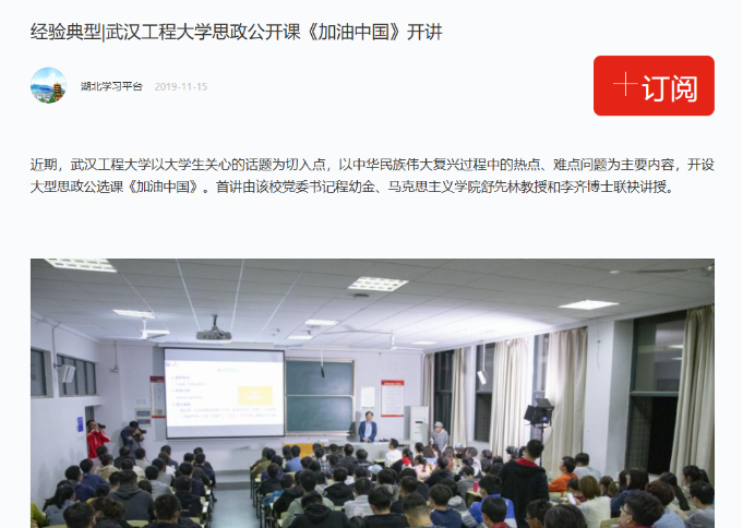 2019Äê10ÔÂ30ÈÕÍí£¬Î人¹¤³Ì´óѧ´óÐÍ˼Õþ¹«Ñ¡¿Î¡¶¼ÓÓÍÖйú¡·ÔÚL4204¿ÎÌÿª½²¡£Ñ§Ð£µ³Î¯Êé¼Ç³ÌÓ×½ð¿ªÆôµÚÒ»¿Î¡£