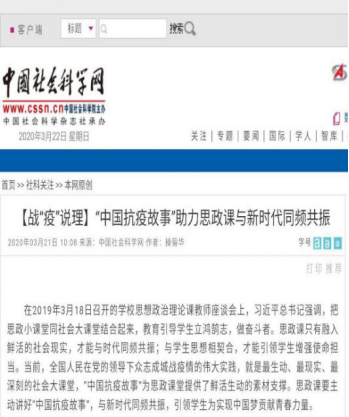 2020Äê3ÔÂ16ÈÕ£¬¡¶³þÌì¶¼»á±¨¡·¿¯·¢±¨µÀ¡°Ç§×Ö¼ÒÐÅ£¬ºÎÖ¹Ö½¶ÌÇ鳤¡±¡£ÕâÔò±¨µÀ¹ûÕæÁË¿¹ÒßÒ»ÏßµÄÀæÔ°Ò½ÔºÒ½ÉúÌïÎÀд¸øÕÉ·òºÎÁÁµÄ¼ÒÐÅ¡£ÎÒÔº¡°»ù´¡½ÌÑÐÊÒ¡±ÔøÌÎÏÈÉúΪ¼ÒÐÅÖÐÌåÏÖµÄտɯÃÀ¶ø¸Ð¶¯£¬¶ø×÷Ϊ˼Õþ¿ÎÏÈÉúµÄËý£¬Ãô¸ÐµØ×¢Öص½Õâ·â¼ÒÐŵļÛÖµ£¬½«ÆäÔËÓõ½ÍøÂç½Ìѧ֮ÖС£2020Äê3ÔÂ18ÈÕ£¬ÊÇϰ½üƽ×ÜÊé¼ÇÖ÷³ÖÕÙ¿ªÑ§Ð£Í·ÄÔÕþÖÎÀíÂÛ¿ÎÎ÷ϯ×ù̸»á²¢½ÒÏþÖ÷Òª½²»°Ò»ÖÜÄêµÄÈÕ×Ó£¬ÍõÍþÏÈÉúÔÚ¡°¼á¶¨ÀíÏëÐÅÐÄ¡±Ò»ÕµĽÌѧÖУ¬½ÓÄÉÌÚѶ¾Û»áµÄ·½·¨£¬Ô¼ÇëÁ˼¸ÃûѧÉúΪ°à¼¶ÆäËûͬÑâÀʶÁÁËÕâ·â¼ÒÐÅ¿ªÕ¹Ê¦Éú»¥¶¯£¬È¡µÃ½ÏºÃµÄ½ÌѧЧ¹û¡£