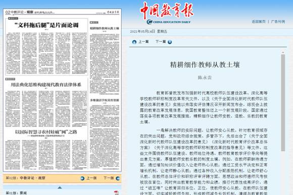 (通讯员 金诗灿)5月14日出书的《中国教育报》刊发了我校腾博tengbo9885官网西席陈永贵博士的文章《精耕细作西席从教土壤》。文章刊发后,被人民网、灼烁网、中国教育新闻网等多家主流网站转载,灼烁网·理论动态栏目对该文举行了论点摘编。