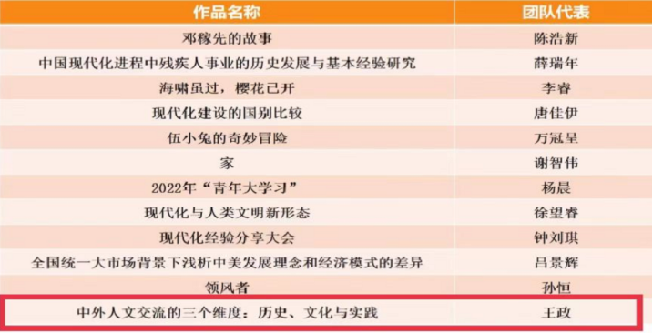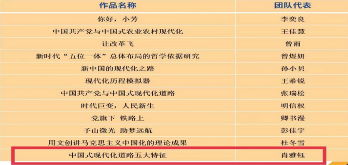本次角逐运动旨在指导大学生起劲运用马克思态度、看法和要领,熟悉中国,熟悉天下,并在观天下的实践中拓宽视野、增添知识。此次共有73支参赛队进入决赛,各参赛步队通过团队分工协作,通过模拟访谈、播放视频、情景模拟、采访等多种形式,生动形象的展示各自的作品。腾博tengbo9885官网的谢俊副教授和余伟斌副教授指导的由马院研究生肖雅钰、钟佩、郭铭惠、王钰蕾、任新阳组成的团队的微视频作品——《中国式现代化蹊径五大特征》,通过比照中西方现代化的蹊径历程,突显了中国在现代化蹊径中差别于其他国家的五大特征,彰显了中国特色社会主义制度的优越性。该作品在强烈的较量中获得二等奖 ;陈永贵博士指导的王政团队的论文作品——《中外人文交流的三个维度:历史、文化与实践》,从历史、文化与实践三个维度叙述了中外人文交流的历史演进、文化特征与实践效果,有力验证了习近平人文交流叙述对引领新时代中外人文交流事情和推感人类运气配合体建设具有重大意义。该作品最终获得三等奖。