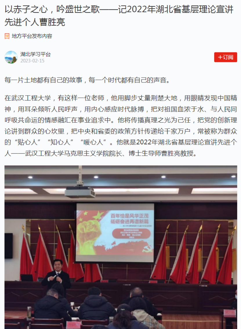 曹胜亮教授先进事迹登上“学习强国”平台
