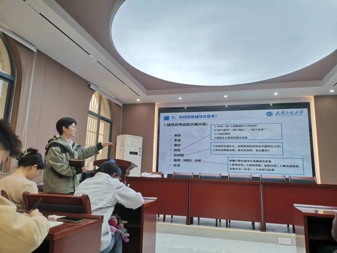 在本次分享交流会中,林昱玘先生以热心学姐的身份向同砚们分享了她备考向导员的履历与技巧。她用“千条线一根针,大学生涯多富厚、向导员的事情就有多富厚”来形容向导员的基本事情,周全而诙谐地让同砚们相识了向导员的事情职责。在谈及“为什么考向导员”时,她提起了自己备考向导员的初心是模范力量的指引,她当初遇到了对她十分关爱的向导员蔡先生,曾看到陈俊书记的一条贴文“听到学生们一个又一个好的结业行止,一种自然的兴奋感油然而生”,她坚定了考向导员的刻意,希望用自己的力量去为学生服务。